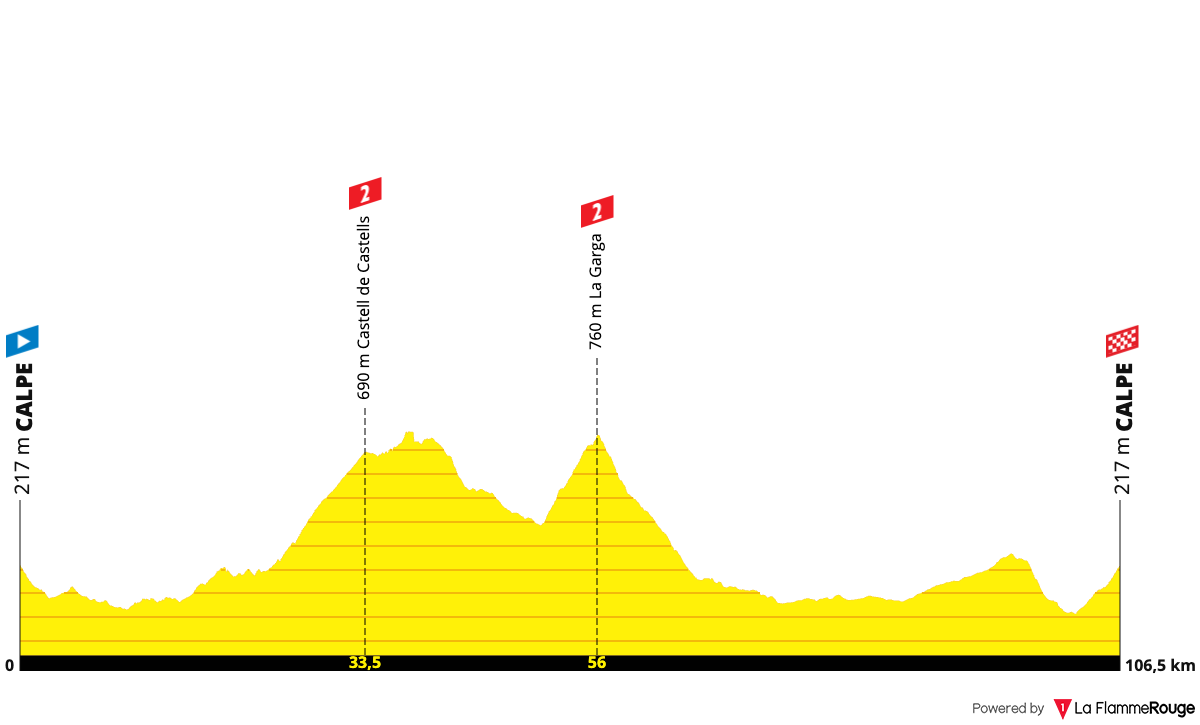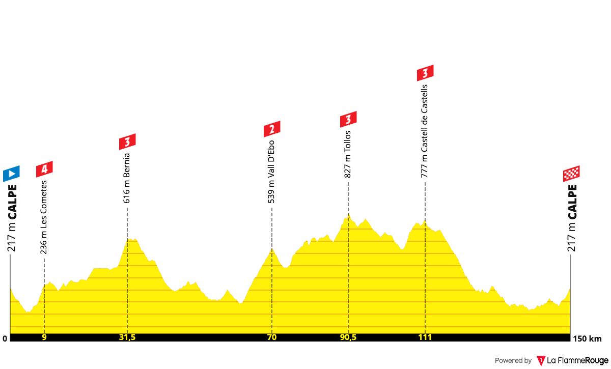 ⛰️ Les Cometes (2.0 km at 7.7 %) ⛰️ Bernia (2.4 km at 8.7 %) ⛰️ Vall d'Ebo (7.8 km at 6.0 %) ⛰️ Tollos (3.9 km at 5.8 %) ⛰️ Castell de Castells (5.9 km at 4.1 %)