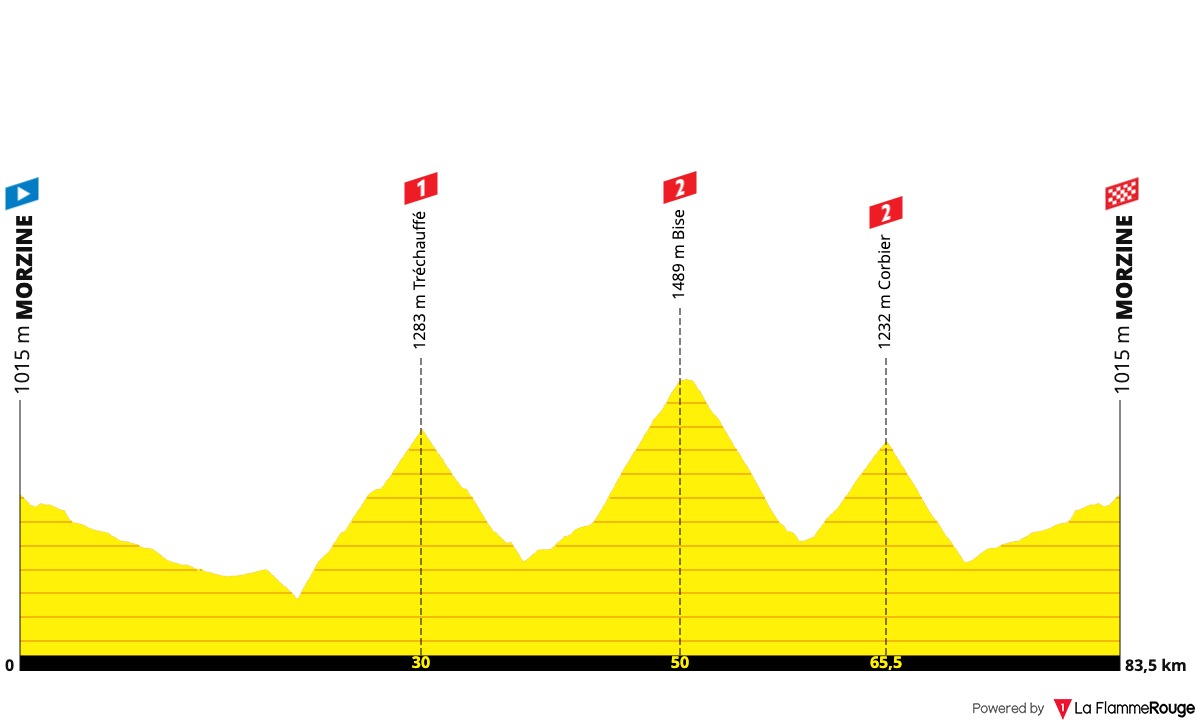 This route is especially worthwhile for its three climbs. Not very famous, but featuring challenging gradients: the Col de Tréchauffé (category 1), Bise (cat. 2), and the Col du Corbier (cat. 2). The distance of this first stage is ideal to warm up for the long week of cycling ahead of us.